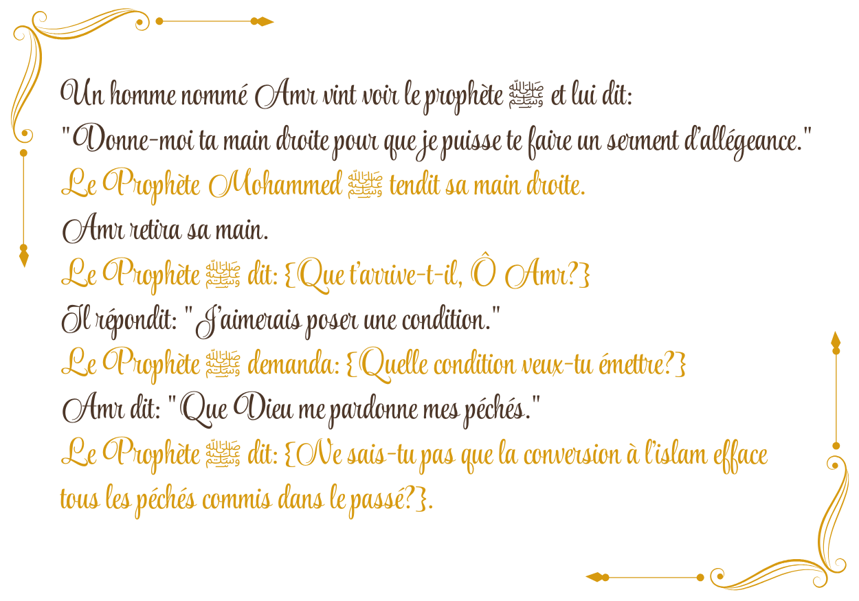 La Commission convertis de la mosquée de Massy accueille et accompagne les personnes qui souhaitent s’informer sur l’Islam ainsi que celles qui veulent se convertir ou sont déjà converties. Nous les accompagnons avant, pendant et après leur conversion à travers un soutien et un appui qui sont nécessaires au cours de ces différentes étapes. Il est important de noter qu'il n'existe aucune contrainte en matière de religion, ce qui signifie que personne ne peut vous forcer à changer de religion ou à vous convertir à l'islam. Cela doit être votre propre choix ou décision indépendante. En prononçant cette profession de foi, ou "Shahadah", avec une croyance et une conviction sincère, on entre dans le giron de l'islam. En prenant cette décision uniquement pour le plaisir de Dieu, tous les péchés antérieurs sont pardonnés et on commence une nouvelle vie de piété et de droiture. Shahadah en arabe : « أَشْهَدُ أَنْ لاَ إِلَهَ إِلاَّ اللَّهُ وَ أَشْهَدُ أَنَّ مُحَمَّدًا رَسُولُ اللَّه » En phonétique : Ash-hadu An-Laa Ilaha Illa-Allaah wa Ash-hadu Anna Muhammadan Rasool-Allaah Traduction en français : J'atteste que nulle divinité est digne d'adoration excepté Allah et j'atteste que Mohammad est le messager d’Allah